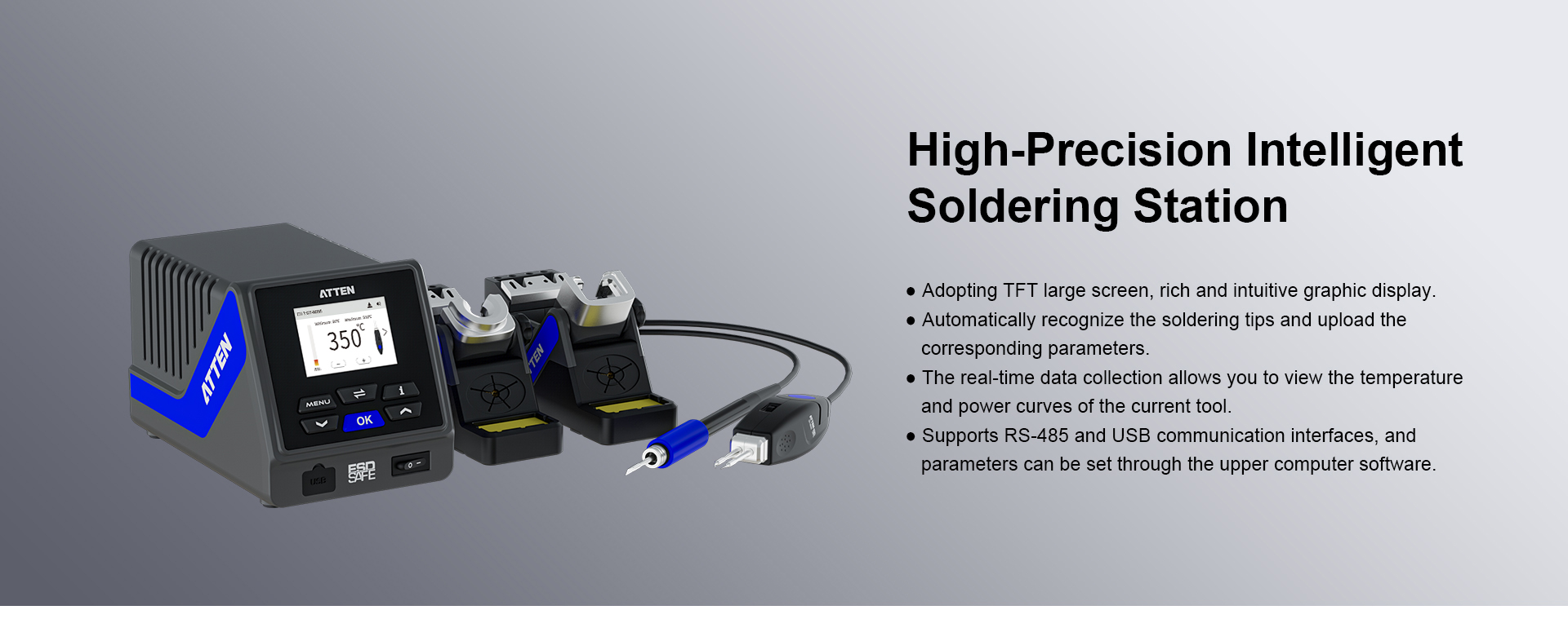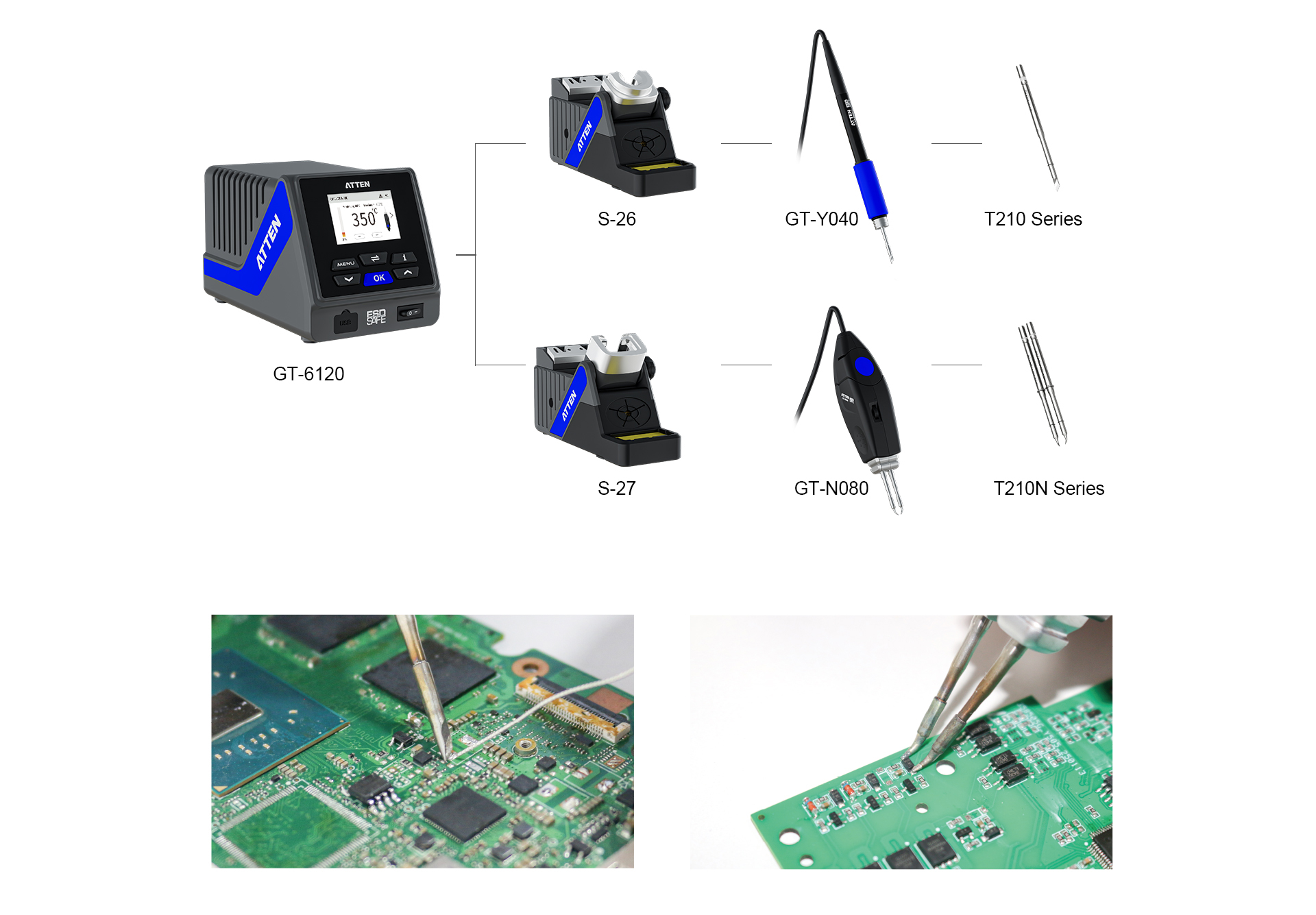 The GT-6120 serves as an advanced precision soldering station engineered specifically for electronics manufacturers, repair technicians, and prototyping engineers requiring consistent solder joint quality. Our company designed this solution to meet stringent performance standards where accuracy and repeatability critically affect product quality. This ATTEN soldering station supports versatile workflows, accommodating a variety of fine-pitch and delicate components. It effectively addresses the operational challenges faced during complex assembly and maintenance processes, providing professionals with a dependable soldering tool adapted to evolving industry demands in electronics production.